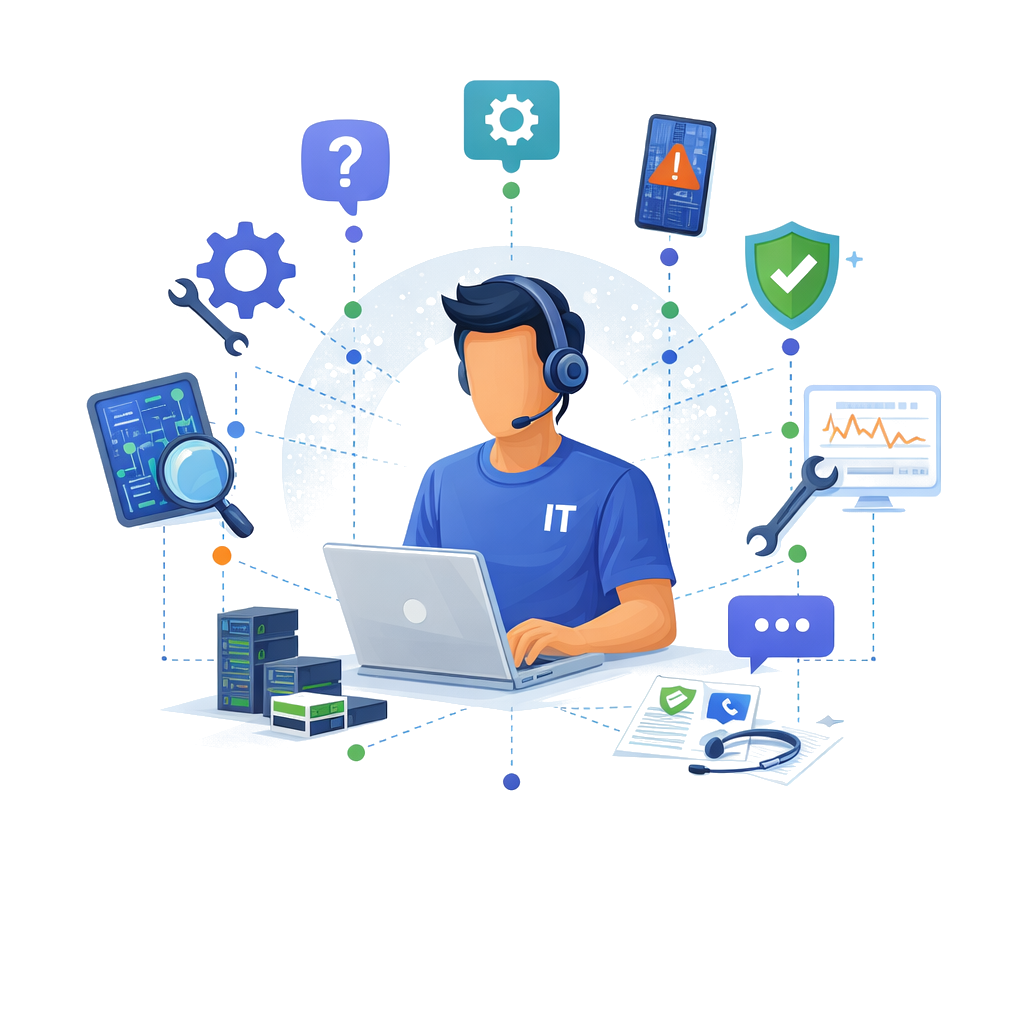Nuestro equipo brinda soporte técnico especializado para usuarios finales y áreas administrativas, ayudando a resolver incidentes, dudas y problemas operativos que afectan la productividad del día a día, con atención clara, cercana y estructurada.